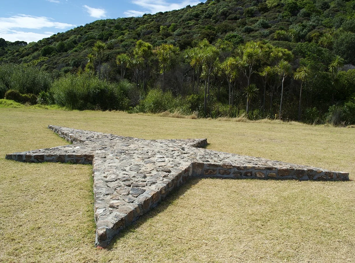 In Samoa, mounds with five projections are believed to have a relationship with the stars and planets. Star Mound is based on the Crux constellation commonly known as the Southern Cross. Made from local rock from Stoneyridge Quarry, Star Mound measured 10m by 5m wide. In keeping with the orientation of the constellation in the sky, the longest ray pointed South.